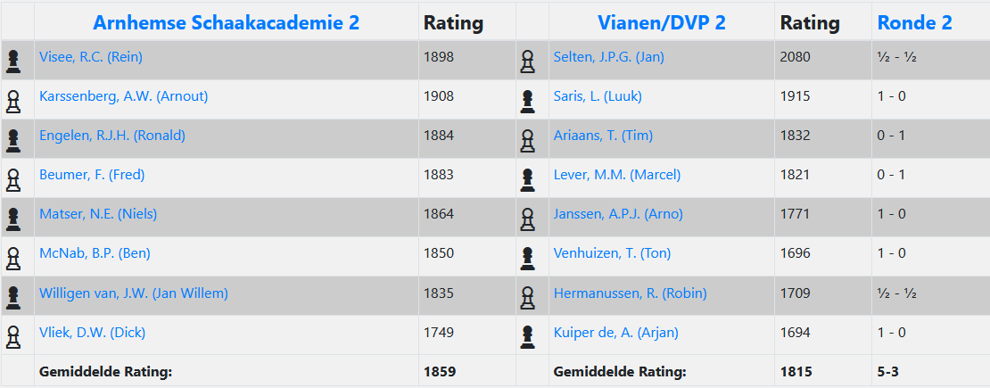 Bord 1: Rein de Visee - Wiebe de Witte 0-1