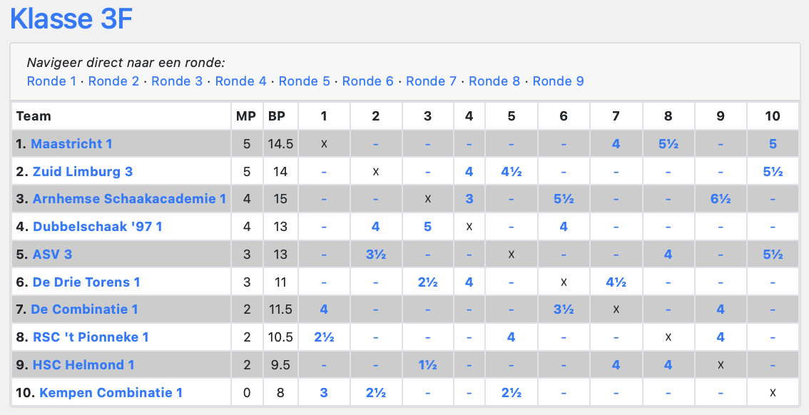 Voor ons is er natuurlijk het zoet van de overwinning en het lijfsbehoud, maar de druiven zijn natuurlijk extra zuur voor onze tegenstander WLC die met hun team zeker ook thuis horen in de 2e klasse. Hopelijk zijn we de komende 20 jaar gevrijwaard van dit soort idiote degradatie-regels en kan een ieder gewoon lekker schaken op zijn eigen niveau.