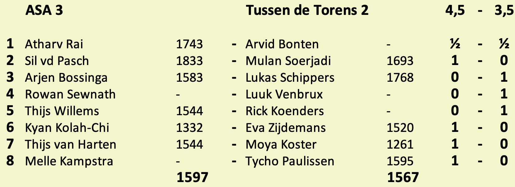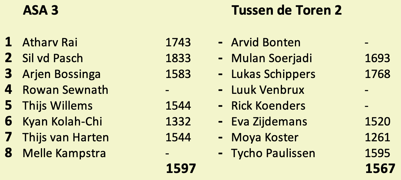 Na de hele partij al beter te hebben gestaan verzilvert Thijs het punt. We staan op voorsprong en alle druk ligt nu bij Melle die een volle toren voorstaat.